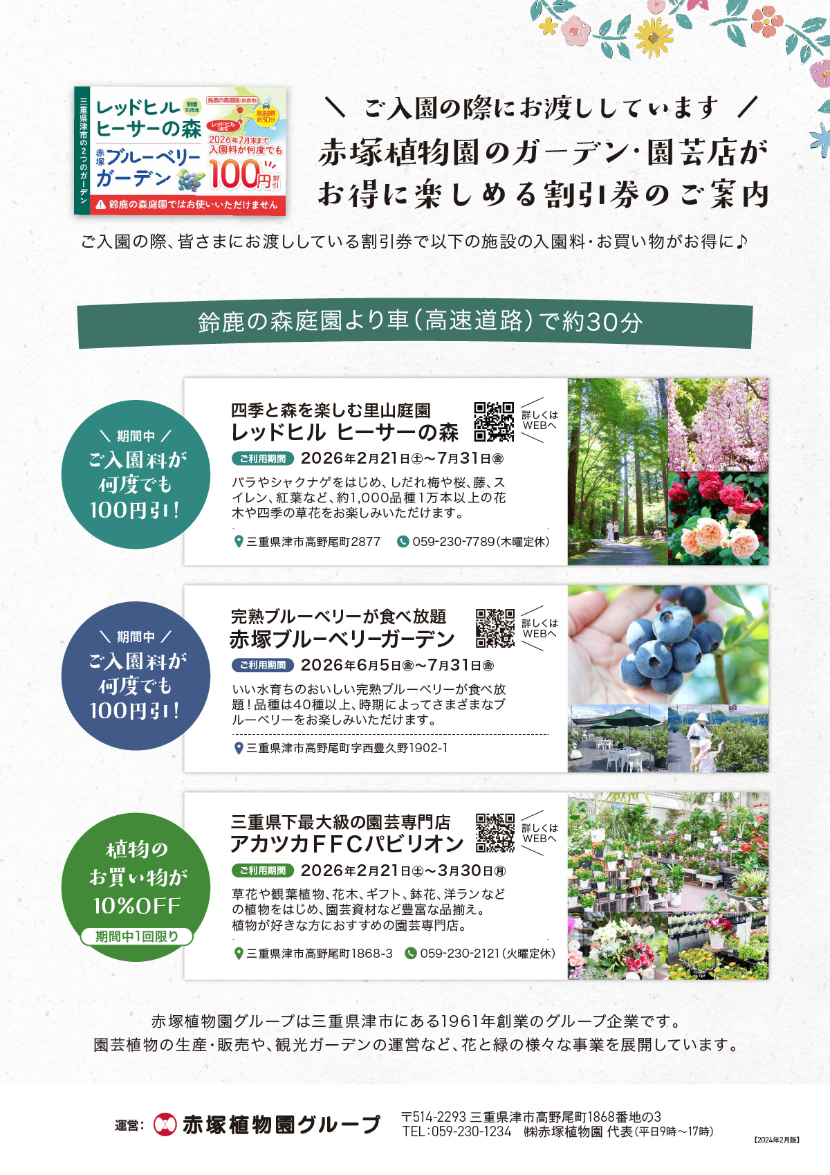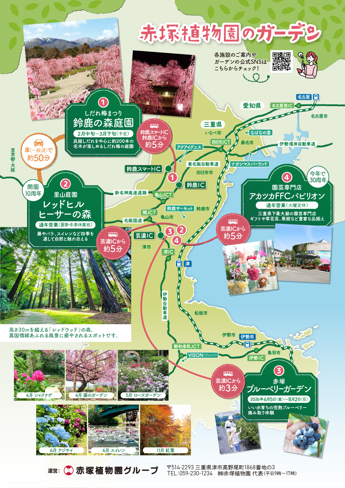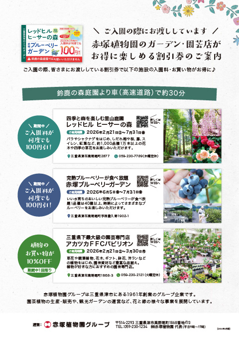 鈴鹿の森庭園は、三重県津市の総合園芸会社である株式会社赤塚植物園(赤塚植物園グループ)が運営しています。