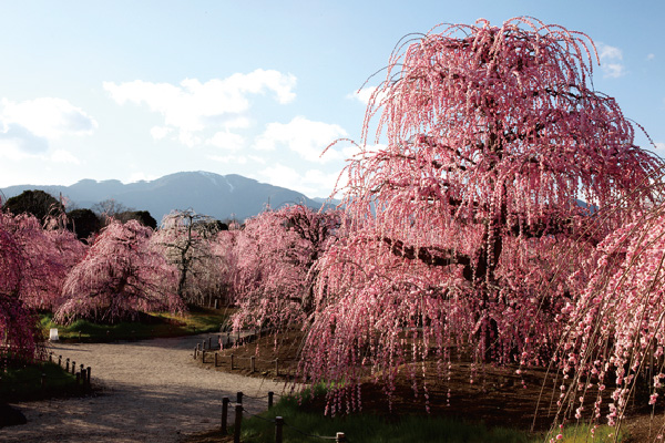 都を守る四神のひとつ、東の青龍から名付けられた曲線を描くしだれ梅の坂道です。