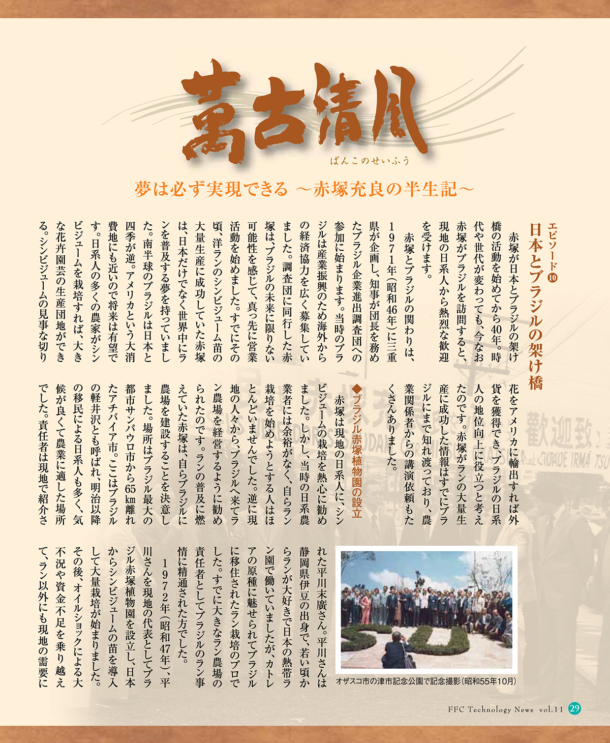 赤塚充良の間近で仕事をしてきた社員が、取り組みやエピソードをクローズアップし、その人物像に迫るコーナー『萬古清風』(ばんこのせいふう)。第10回は「日本とブラジルの架け橋」です。