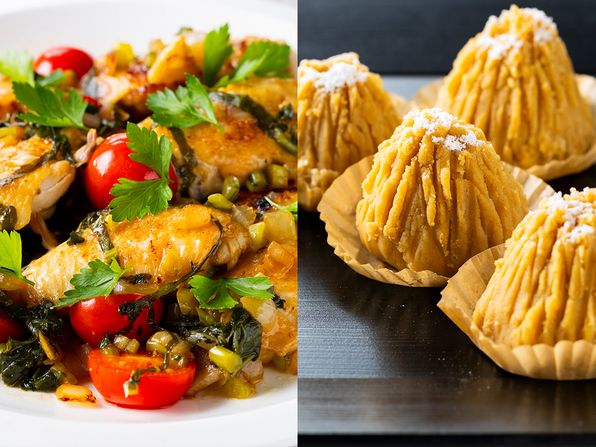 そして、デザートは「さつまいものモンブラン風」。食物繊維やビタミンが豊富な健康食材、サツマイモを使って、さらにはシナモンを効かせてみました。お手軽なのに、見た目は華やかなモンブラン風。ご家族そろっての、あるいは気の置けない友人たちとの食事のエンディングが盛り上がりそうですね。