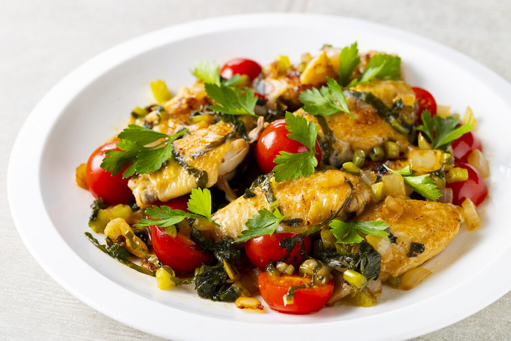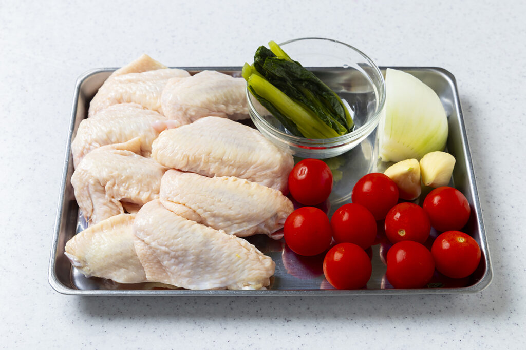 まずメインは、鳥の手羽先を使った「手羽先のイタリアン風焼き」です。仕上げに野沢菜とトマト、さらにはおしょうゆを加えて炒めることで、和風の塩味、酸味、うま味のハーモニーが味わえます。材料費はリーゾナブルでお財布にやさしい、彩鮮やかなハレの日レシピです。