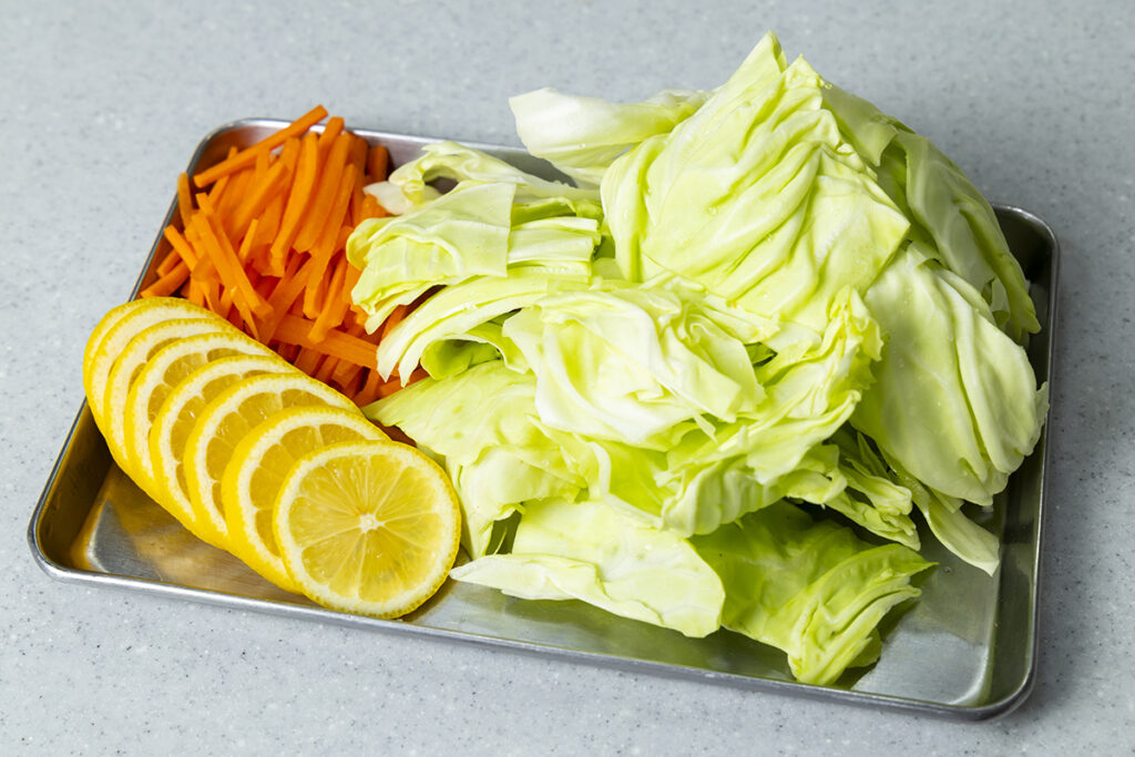 キャベツ、ニンジン、レモンはあらかじめ切りそろえておく。