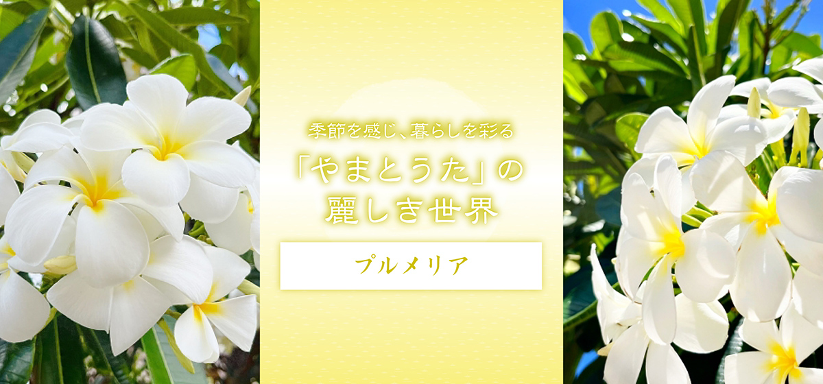 ハワイでは神聖な花としてレイや髪飾りによく用いられます。バリ島でも歓迎の花として利用される他、朝夕のお供え物にも加えられるそうです。ニュージーランドやサモア、フィジーでもレイに活用されるプルメリア。太平洋の島々の陽射しに輝く姿は、見る人の心も明るく飾ってくれるのでしょう。