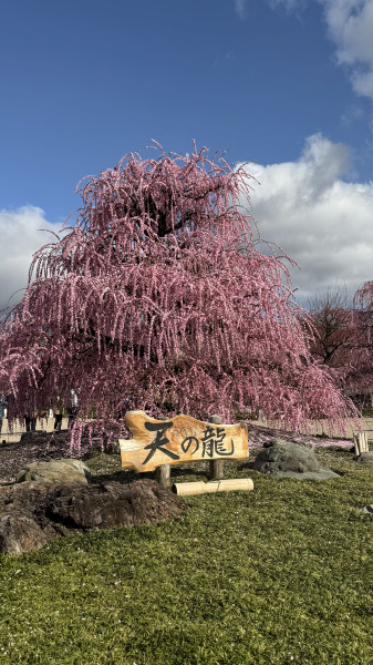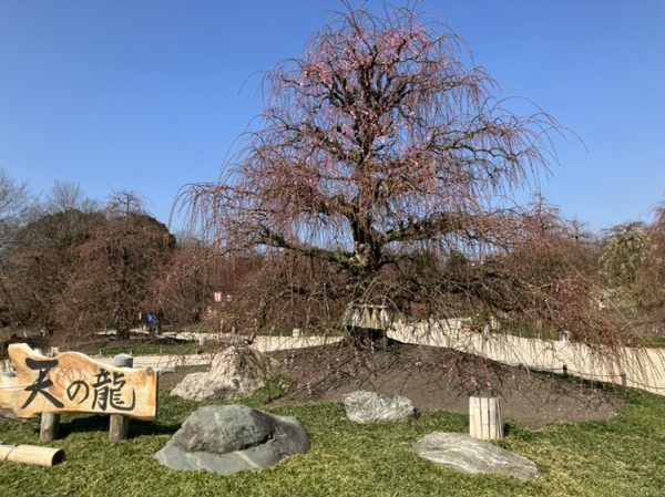 【2/24(火)のご案内】🌸開花状況:五分咲き🌸入園料:1,500円🌸ライトアップ:実施なし🚌臨時バス:昼便のみ運行「呉服(くれは)しだれ」の開花が進み、見応えがでてきました。今週末にかけてさらに咲き進んでいきそうです🌸